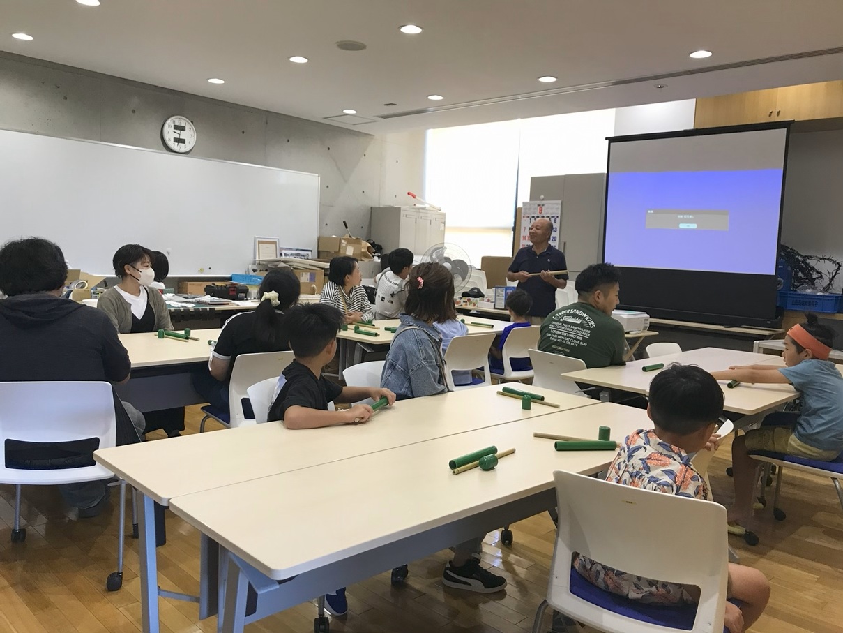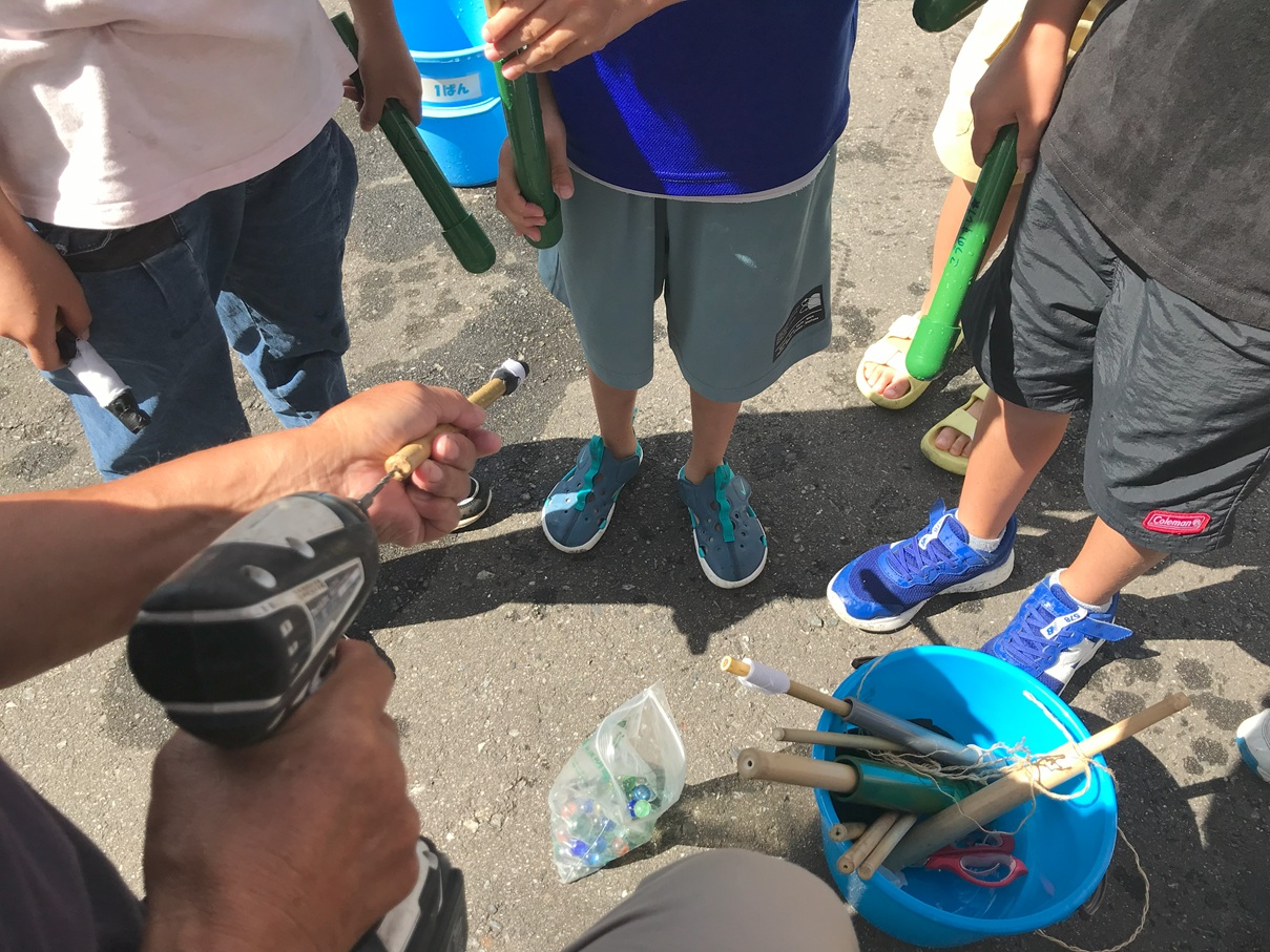 今日は秋晴れの中、「手作り水鉄砲体験教室」が行われました。