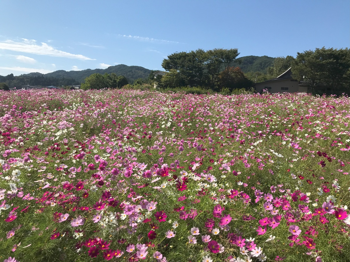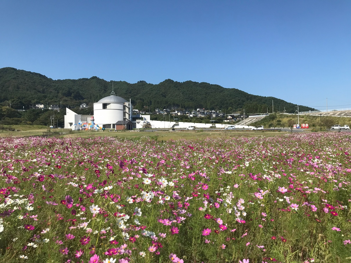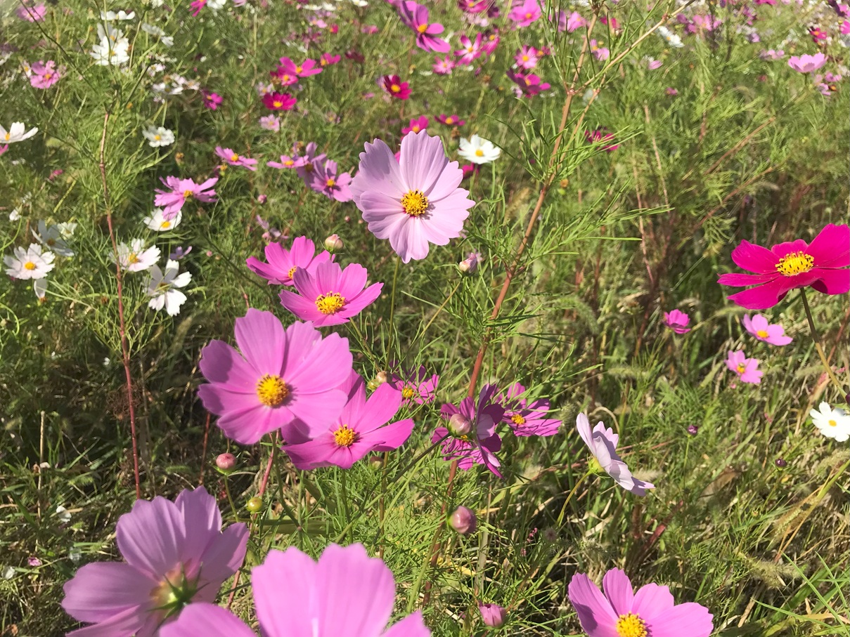 風に揺られるコスモスを眺めながら散歩をして、秋を感じてみませんか。