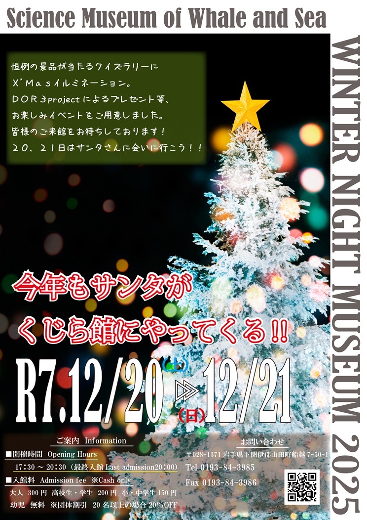 お問い合わせは、鯨と海の科学館(0193-84-3985)まで