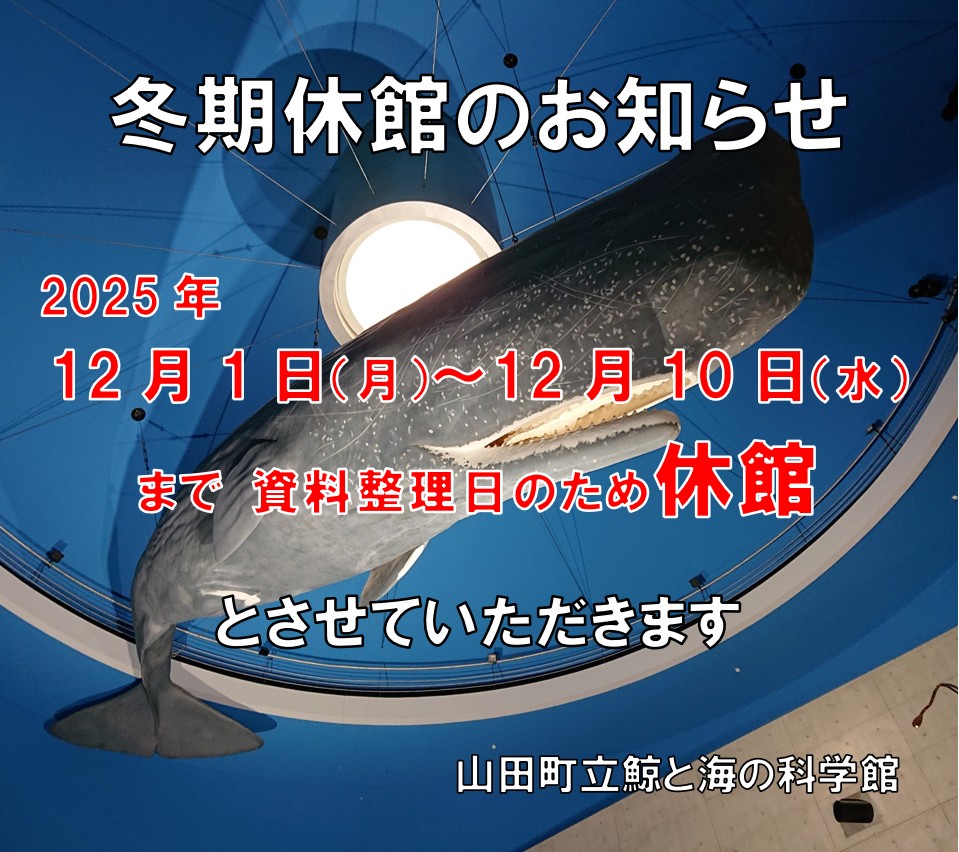 12月1日(月)~10日(水)まで、資料整理と清掃のため冬期休館させていただきます。