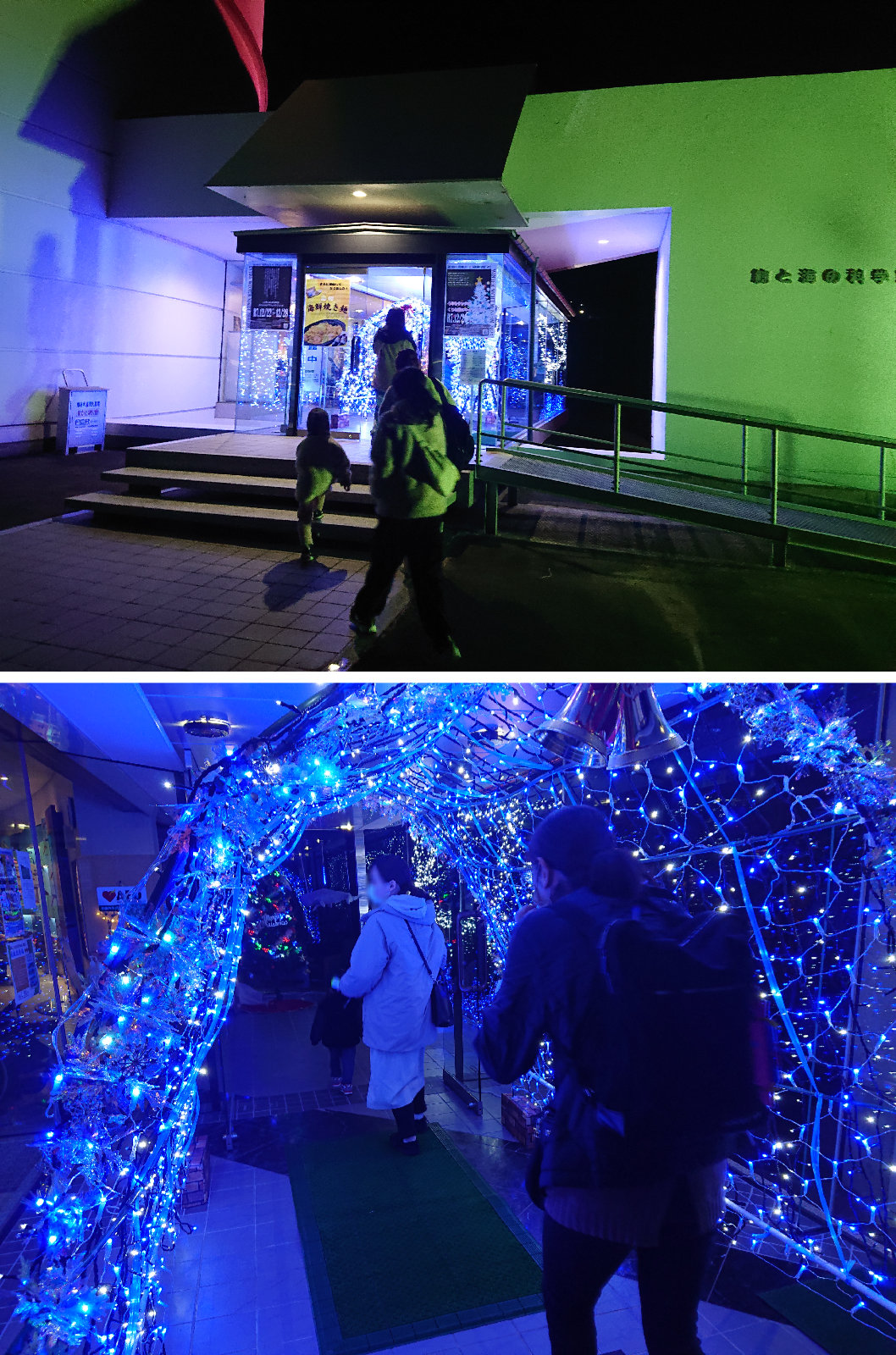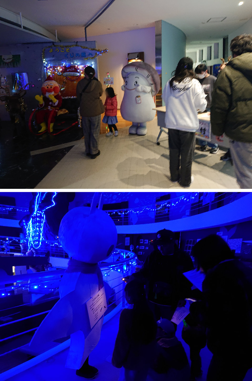 昨夜は冬のナイトミュージアムが開催されました。早速たくさんのお客様におこしいただきました。ありがとうございます。海の人気者たちからのクイズに答えれば最後に宝箱に挑戦できます。