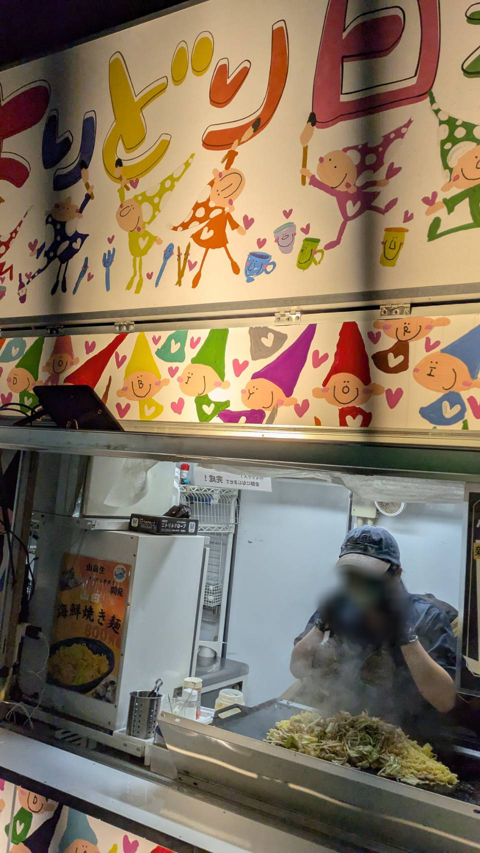 海の幸がたっぷりと入った山田海鮮焼き麺、販売時間は17:00~19:30です。