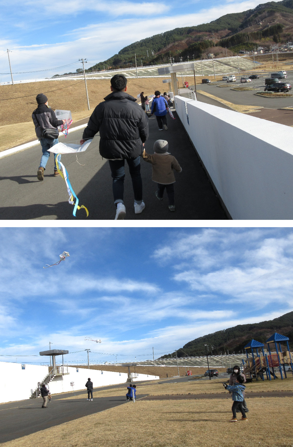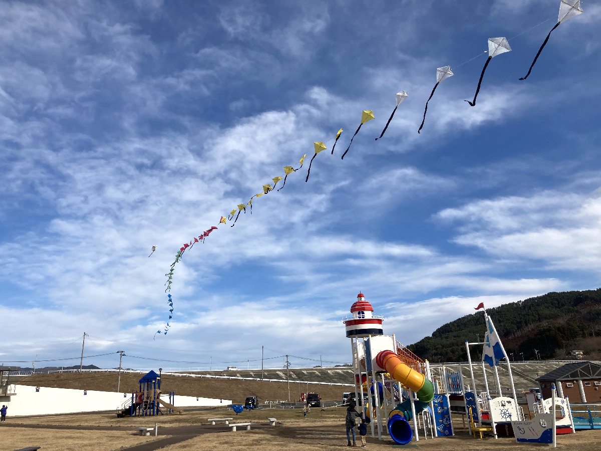 連凧と皆さんの凧が並んで飛んだりして楽しい時間となりました。