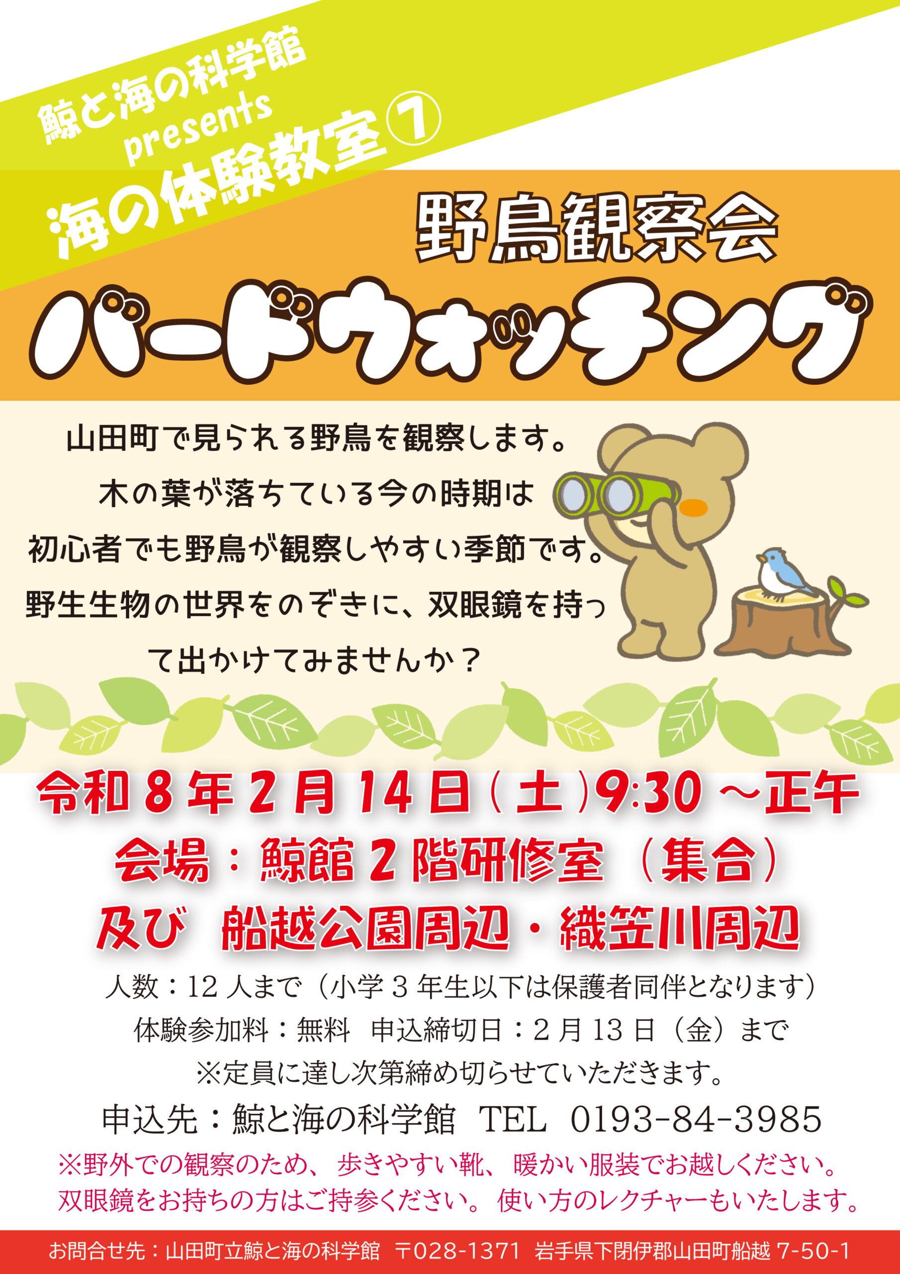 お問合せ・申込先 鯨と海の科学館 0193-84-3985 まで