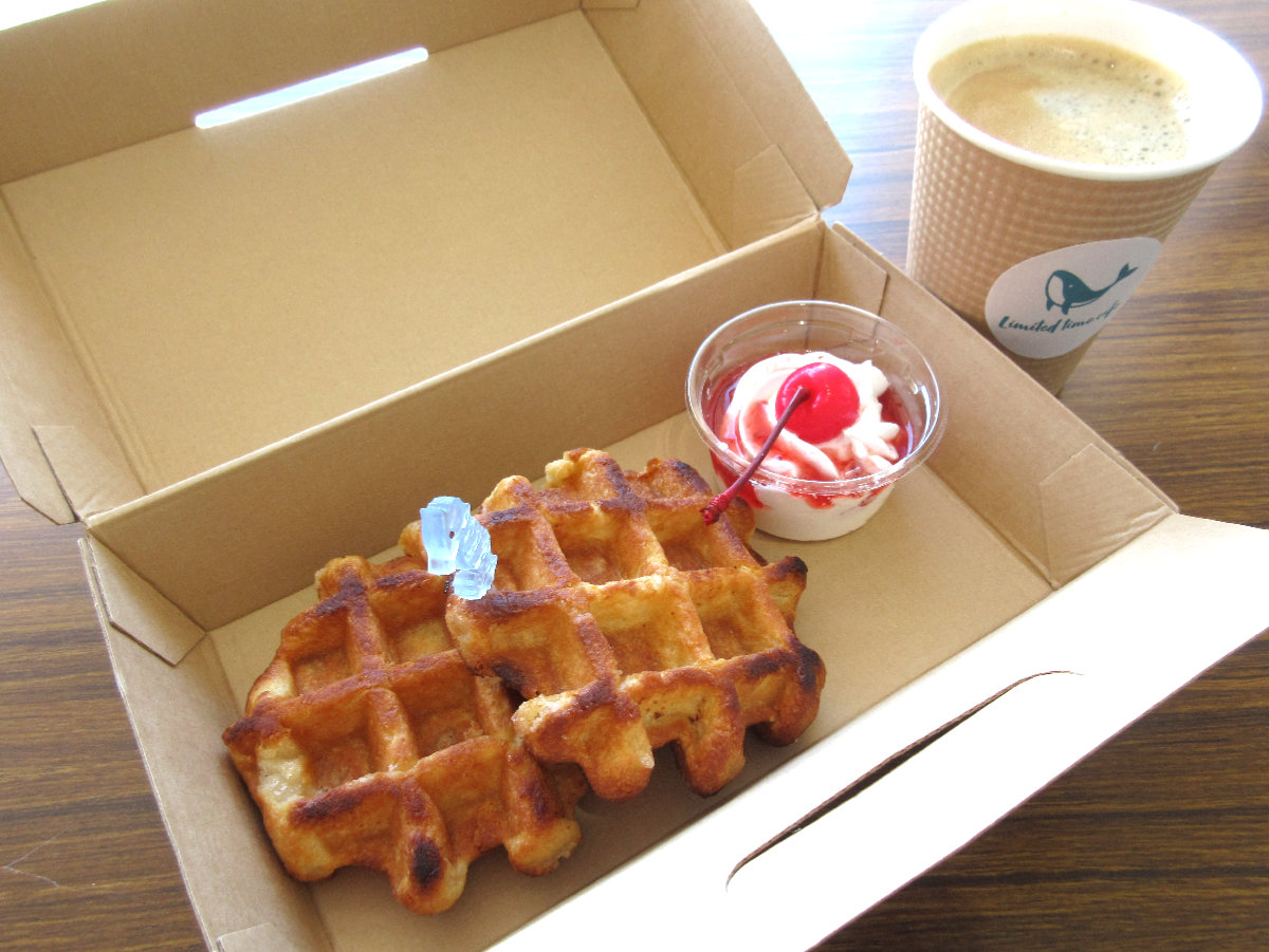 また3月の土日祝日限定で鯨館1階ラウンジで高校生のカフェが開いています。ワッフルは付け合わせがアイスかクリームか選べます。あわせてお越しください。